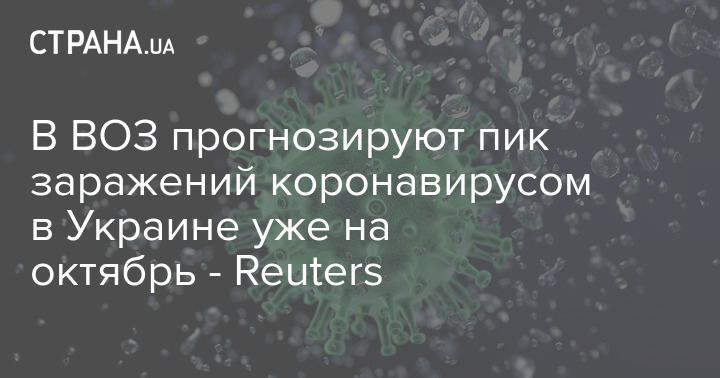 В ВОЗ прогнозируют пик заражений коронавирусом в Украине уже на октябрь - Reuters