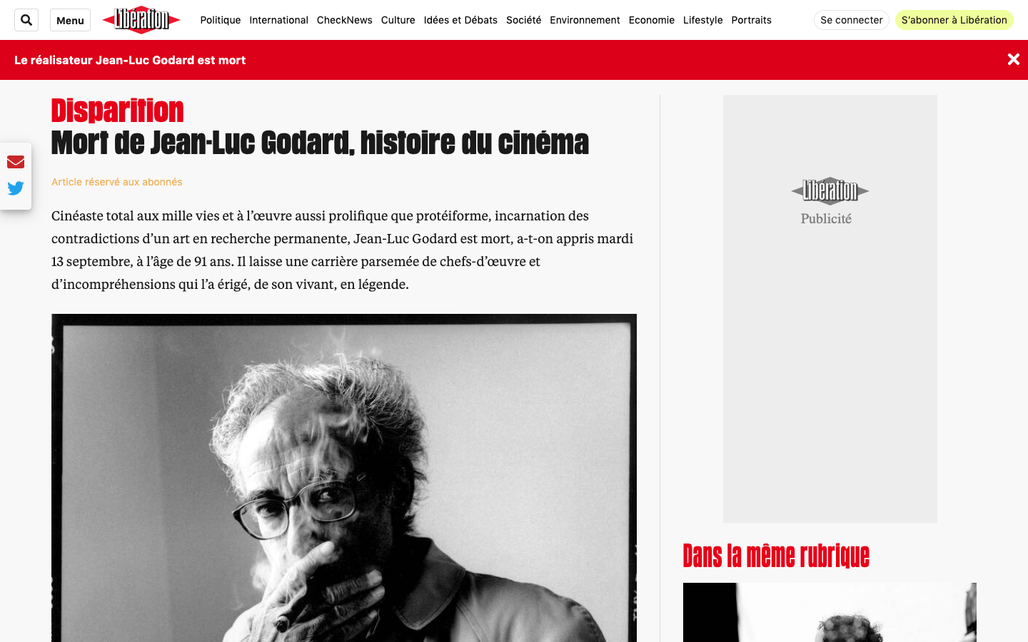 Умер выдающийся французский режиссер Жан-Люк Годар