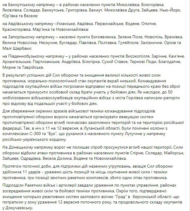 О контрнаступлении украинских войск на юге в сводке не упоминается.