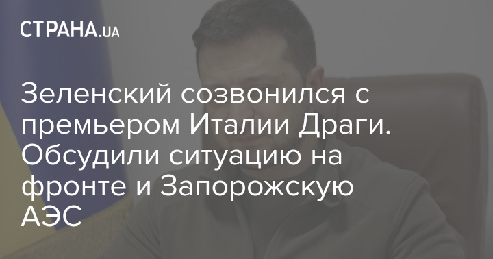 Зеленский созвонился с премьером Италии Драги. Обсудили ситуацию на фронте и Запорожскую АЭС