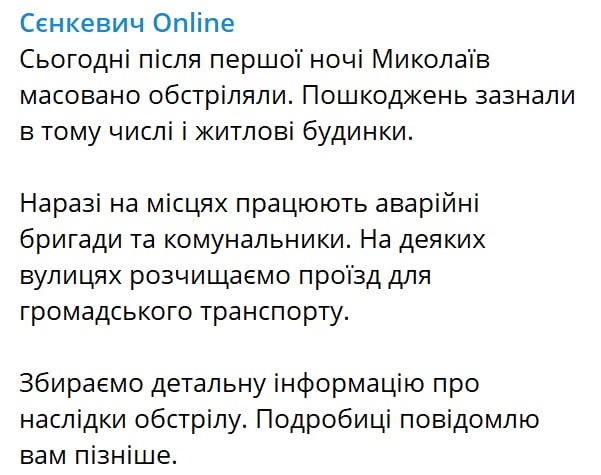 Николаев ночью подвергся массированному обстрелу, пострадали жилые дома - мэр