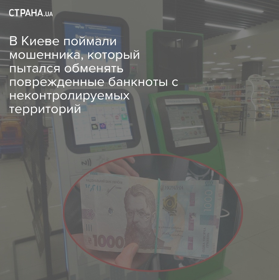 В Киеве разоблачили мошенника, который пытался обменять поврежденные банкноты с оккупированных территорий на 40 тысяч гривен.