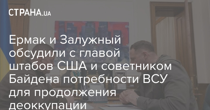 Глава Офиса президента Андрей Ермак и главком ВСУ Валерий Залужный провели телефонный разговор с советником президента США по нацбезопасности Джейкобом Салливаном и председателем Объединенного комитета начальников штабов Марком Милли.