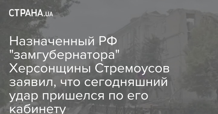 Назначенный россиянами "замглавы администрации Херсонской области" Кирилл Стремоусов заявил, что ракетный удар по админсуду в центре города пришелся по его кабинету.