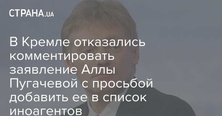 "Кремль не комментирует пост в соцсетях Аллы Пугачевой с просьбой добавить ее в список иноагентов", - заявил пресс-секретарь президента РФ Дмитрий Песков.
