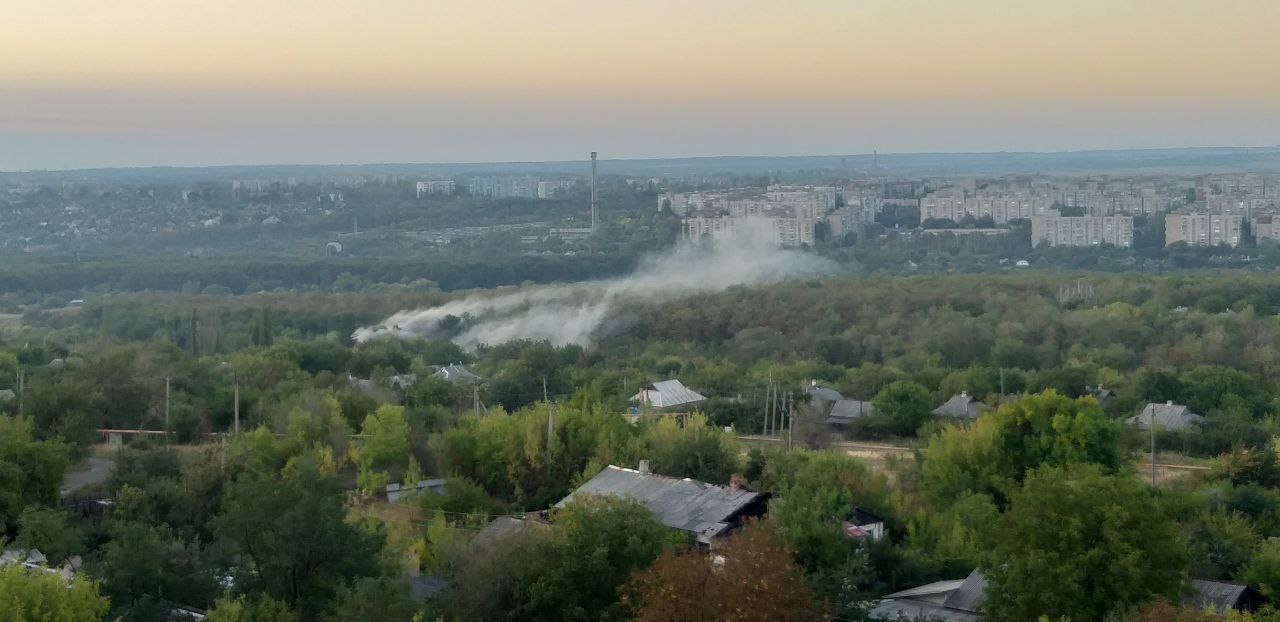 07:57 Утренний прилет по неподконтрольной Горловке. Над городом поднимается дым.