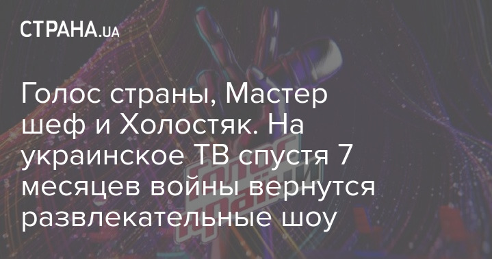 Голос страны, Мастер шеф и Холостяк. На украинское ТВ спустя 7 месяцев войны вернутся развлекательные шоу