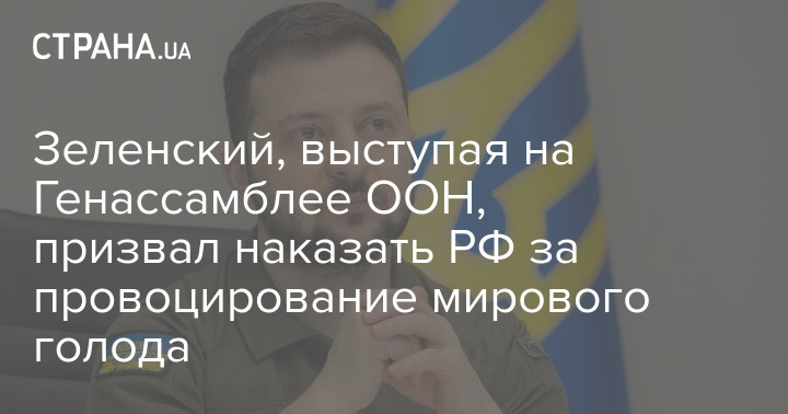 Зеленский, выступая на Генассамблее ООН, призвал наказать РФ за провоцирование мирового голода