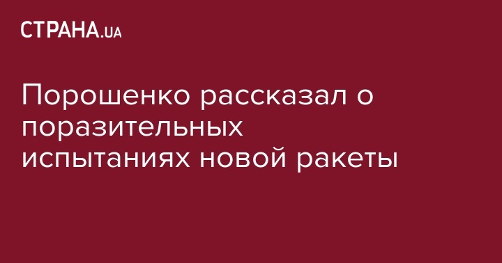 В Украине успешно прошли испытания новой ракеты с прицельной дальностью стрельбы 60 км. Об этом на своей странице в социальной сети Facebook сообщил президент Петр Порошенко.