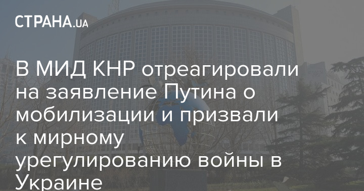 В МИД КНР отреагировали на заявление Путина о мобилизации и призвали к мирному урегулированию войны в Украине