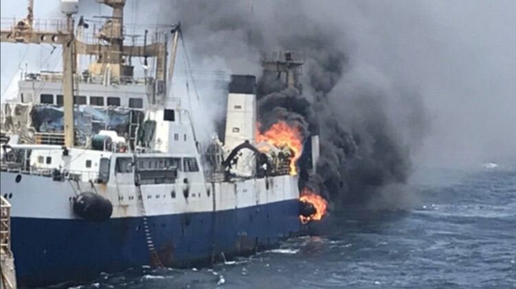 Атака иранского беспилотника "Shahed-136". Появилось фото горящего буксира в порту Очакова