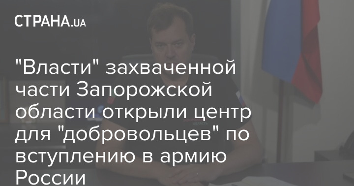 "Глава" подконтрольной РФ "администрации Запорожской области" Евгений Балицкий сообщил об открытии в регионе центра по "приему заявлений" в российскую армию.