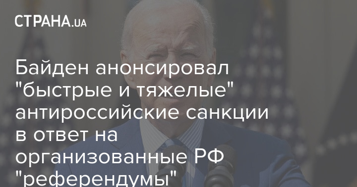 Президент США Джо Байден анонсировал "быстрые и тяжелые" антироссийские санкции в ответ на "референдумы" на Донбассе, в Херсонской и Запорожской областях.