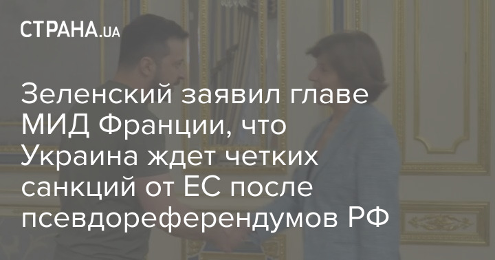 Президент Зеленский сообщил в своем Телеграм о том, что он провел встречу с Катрин Колонной, на которой они обсудили новые санкции против РФ и ответные меры для России после псевдореферендумов
