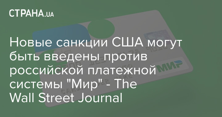 Новые санкции США могут быть введены против российской платежной системы "Мир" - The Wall Street Journal