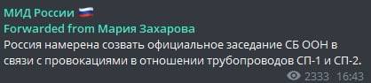 Россия намерена созвать заседание Совбеза ООН в связи со взрывами трубопроводов "Северных потоков".