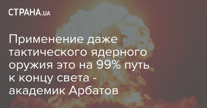 Применение ядерного оружия, даже тактического, - это путь к концу света. В этом уверен российский академик Алексей Арбатов. По его мнению, даже ограниченный удар тактическим ядерным оружием на 99% приведет к ситуации, в которой в конечном счете будет использовано стратегическое.