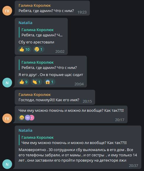 В комментариях к последней публикации (она появилась 25 сентября) подписчики интересуются судьбой администратора, но что в чате сообщают, что администратор задержан. Также пишут, что ему якобы 14 лет.