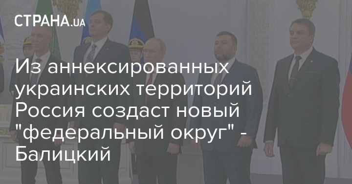 Так, "глава администрации" Запорожской области Евгений Балицкий сообщил, что из аннексированных территорий РФ создаст новый федеральный округ. По его словам, название округа ещё обсуждается.