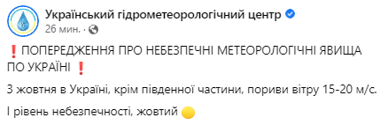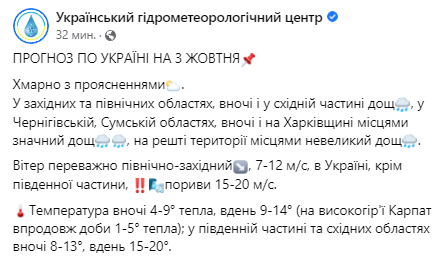 В понедельник, 3 октября, погода в Украине будет облачной, с прояснениями.