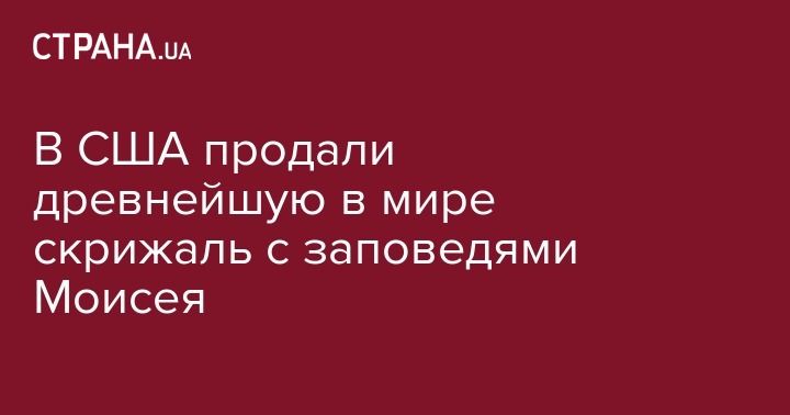 На аукционе в Беверли-Хиллз за 850 000 долларов была продана самая древняя из известных каменная скрижаль с библейскими Десятью заповедями, дарованных Богом Моисею и Израилю. Об этом сообщает ВВС.