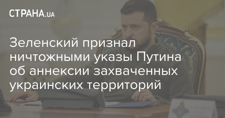 Президент Украины Владимир Зеленский указом №687 от 4 октября признал ничтожными указы Владимира Путина о т.н "независимости" Крыма, Луганской, Донецкой, Херсонской и Запорожской областей и любые решения их на основании.