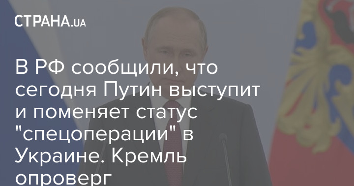 В РФ сообщили, что сегодня Путин выступит и поменяет статус "спецоперации" в Украине. Кремль опроверг