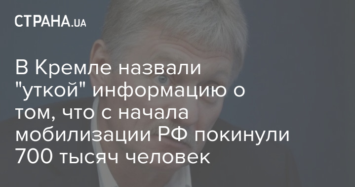 В Кремле назвали "уткой" информацию о том, что с начала мобилизации РФ покинули 700 тысяч человек