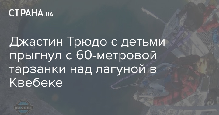 Премьер Канады Джастин Трюдо, который в мае посетил Ирпень, прыгнул с 60-метровой тарзанки над лагуной Great Canadian Bungee в квебекском городке Челси.