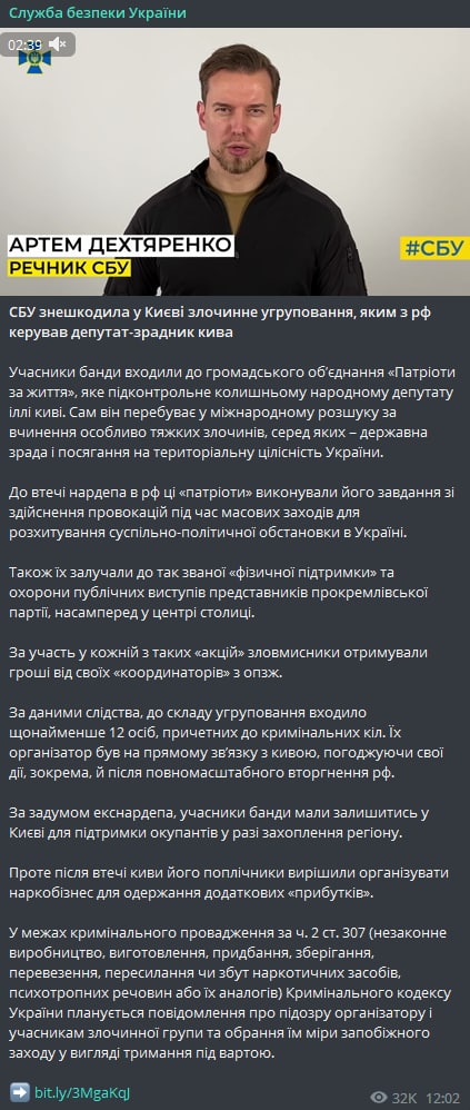 В Киеве СБУ задержала представителей организации "Патриоты за жизнь", которой руководил экс-нардеп Илья Кива. Им вручили подозрения по ч.2 ст.307 - незаконное производство, изготовление, приобретение, сбыт наркотических средств, сообщает пресс-служба ведомства.