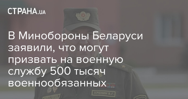 При необходимости Минобороны Беларуси может призвать на военную службу 500 тысяч военнообязанных, заявил министр обороны Беларуси Виктор Хренин.