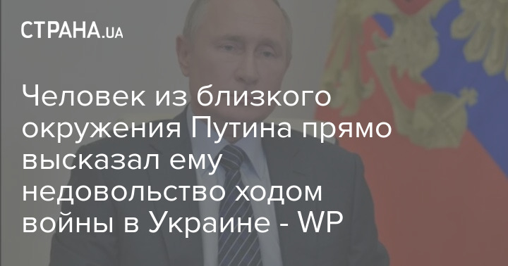 Человек из близкого окружения Путина прямо высказал ему недовольство ходом войны в Украине - WP