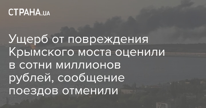 Ущерб от повреждения Крымского моста оценили в сотни миллионов рублей, сообщение поездов отменили