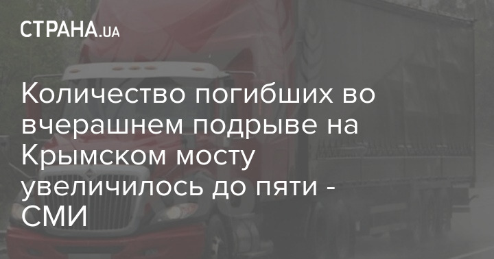 Количество погибших во вчерашнем подрыве на Крымском мосту увеличилось до пяти.