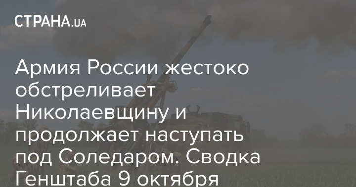 Армия России жестоко обстреливает Николаевщину и продолжает наступать под Соледаром. Сводка Генштаба 9 октября