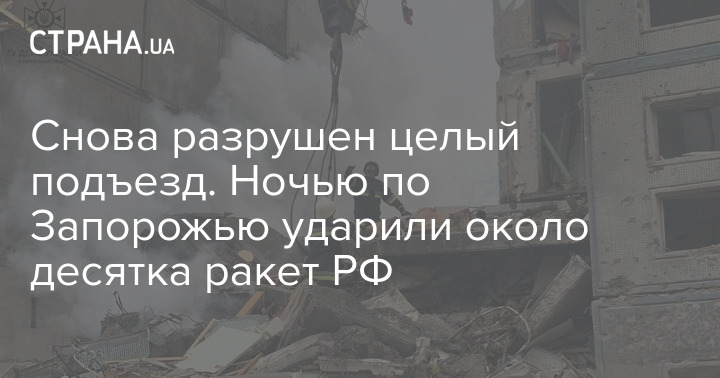 Снова разрушен целый подъезд. Ночью по Запорожью ударили около десятка ракет РФ