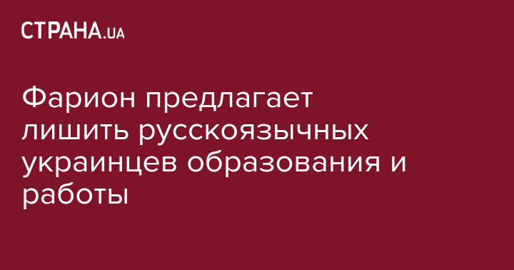 "Путин идет сюда с какой мотивацией? С очень простой. Он защищает "русскоязычное население". Мы на них абсолютно не должны обращать внимания – мы должны упрямо делать свое дело. Это граждане Украины, которые должны выполнять закон. А закон – это 10-я статья Конституции Украины. А если ты не выполняешь закон, ты не должен получать образование, работу. До каких пор мы еще будем обращать внимание на каких-то странных людей, которые никак не могут интегрироваться в украинское общество?", - заявила Фарион.
