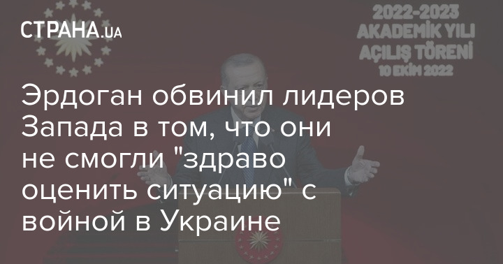 Президент Турции Реджеп Тайип Эрдоган обвинил лидеров Запада в том, что они не смогли "здраво оценить ситуацию" с войной в Украине, поэтому некоторые из них "теперь думают, как пережить грядущую зиму".