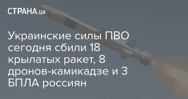 Позже в Командовании Воздушных Сил уточнили, что сбито уже 18 крылатых ракет, 8 дронов-камикадзе и 3 БПЛА.
