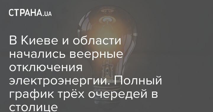 Сегодня вечером в Киеве и в области будут веерные отключения электроэнергии.