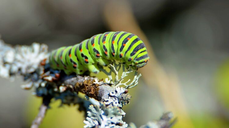 Чернобыльский радиационно-экологический биосферный заповедник показал, как выглядит "полуфабрикат" бабочки махаон - ее гусеница.