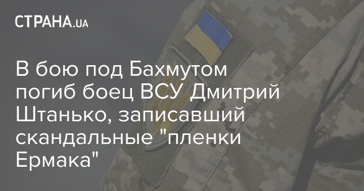 Под Бахмутом погиб боец 93-й бригады ВСУ Дмитрий Штанько, который записал скандальные "пленки Ермака" - разговоры с братом главы Офиса президента Денисом Ермаком, где тот, как утверждается, "продавал" должности. Затем Штанько был задержан СБУ по подозрению в деле о мошенничестве и о подстрекательстве к взятке.