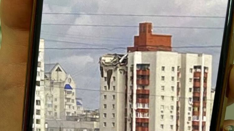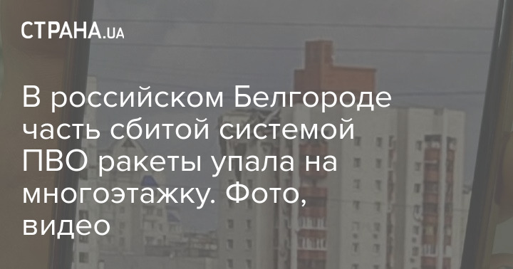 В российском Белгороде часть сбитой системой ПВО ракеты упала на многоэтажку. Фото, видео