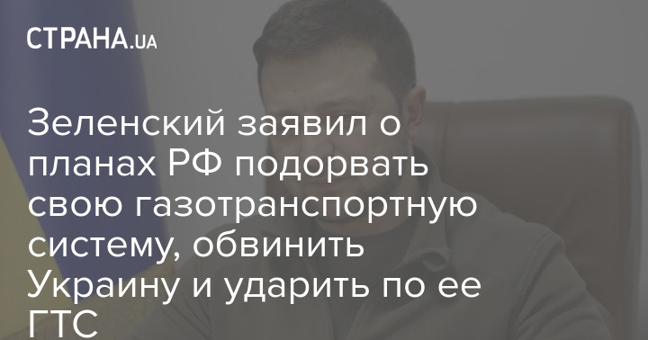 Президент Украины Владимир Зеленский заявил, что Россия планирует нанести удары по своей газотранспортной инфраструктуре с целью обвинить в этом Украину и затем нанести удар по украинской ГТС перекрыв по ней поставки газа в Европу.