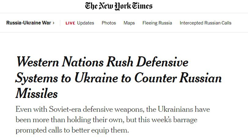 В ЕС и США вчера сформулировали, что ответом на беспрецедентную ракетную атаку России по городам и инфраструктуре Украины будет усиленная поставка средств ПВО.