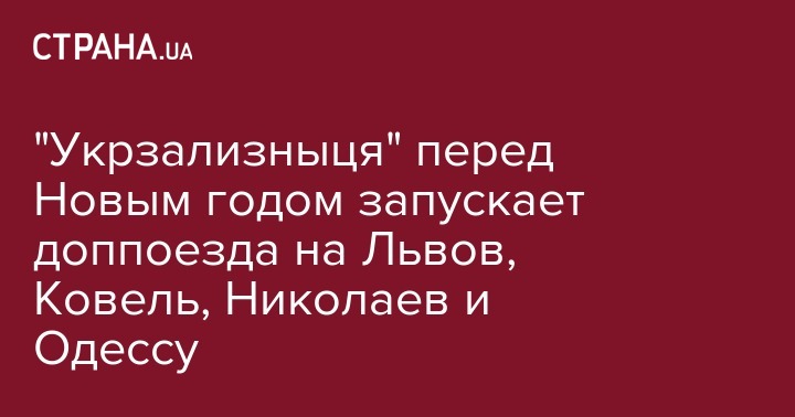 Публичное акционерное общество "Укрзализныця" вводит 4 дополнительных поезда и увеличивает периодичность курсирования 5 поездов на период и в канун новогодних праздников - с 29 по 31 декабря. Об этом сообщает пресс-служба ведомства.