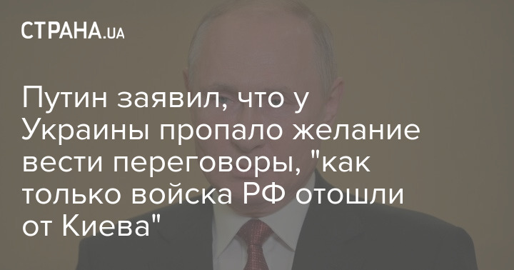 Путин заявил, что у Украины пропало желание вести переговоры, "как только войска РФ отошли от Киева"