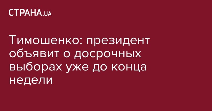 В течение 5 дней президент может объявить о внеочередных выборах в Верховную Раду. С таким заявлением выступила лидер фракции "Батькивщина" Юлия Тимошенко, сообщает "Интерфакс-Украина"