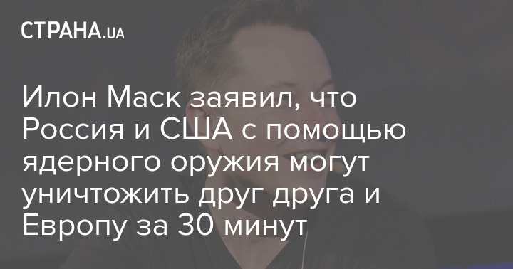 Илон Маск заявил, что Россия и США с помощью ядерного оружия могут уничтожить друг друга и Европу за 30 минут