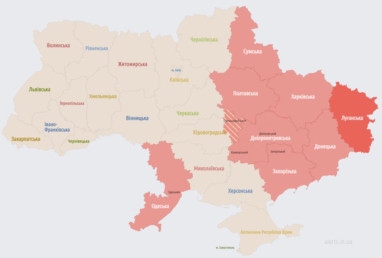 08:13 Воздушную тревогу объявили и в южных регионах. При этом в Киеве и области она продолжается.